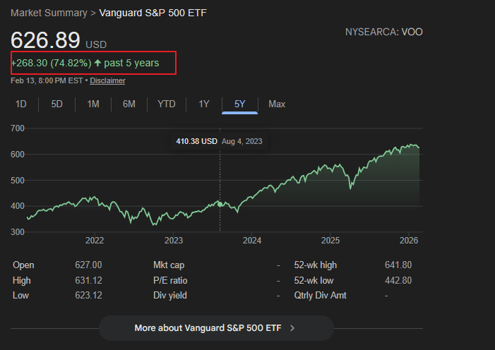 Vanguard S&P 500 ETF 5-Year-Return: